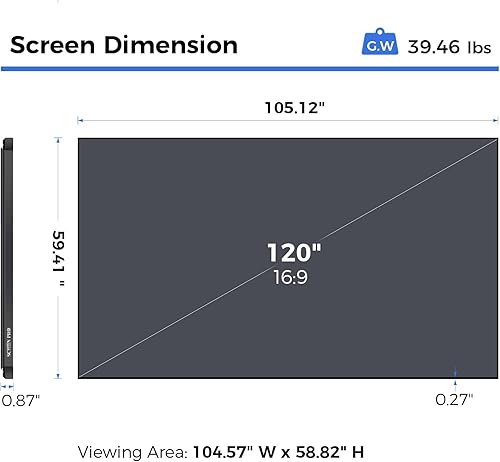 SCREEN PRO AZ-120 120″ diagonal wall-mount fixed-frame ALR screen [Screen Pro] [YouTube video] [How to Install video] [at Amazon] rejects up to 93% of ceiling ambient light with 0.85 gain and 178° viewing angle.